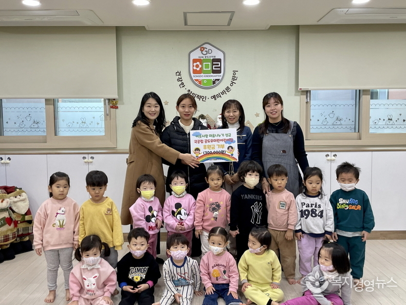 안성시 국공립 공도우미린어린이집(원장 김영애)은 12월 4일(월) 안성시서부무한돌봄네트워크팀(팀장 유성아)에 어려운 이웃들에게 희망을 전달하고자 후원금 300,000원을 기부했다.