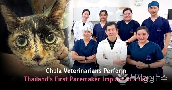 복지경영뉴스 이명수 기자 | 방콕, 2025년 11월 24일 -- 쭐랄롱꼰 대학교 수의학부 소속 수의사들이 태국 최초로 고양이 심박동기 삽입 수술을 성공적으로 시행했다. 이번 성과는 태국이 고도화된 수의 심장학 분야에서 새로운 단계로 진입했음을 보여주는 의학적 이정표다. 수술은 생리학과의 아누삭 키짜원랏(Anusak Kijtawornrat) 부교수가 이끌었다. 이번 성공으로 태국의 정밀 동물 의료 역량이 성장하고 있음을 입증했다.