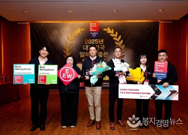복지경영뉴스 이명수 기자 | 서울, 한국 2025년 12월 15일 -- 해상풍력 및 에너지 인프라용 강관 제조 기업 EEW KOREA(공동대표 김덕한•탁관규)가 지난달 19일 서울 여의도 태영빌딩 T-아트홀에서 열린 2025 GPTW(Great Place To Work) 시상식에서 '2025 대한민국에서 가장 일하기 좋은 기업' 인증을 포함해 총 4개 부문을 수상했다고 밝혔다.