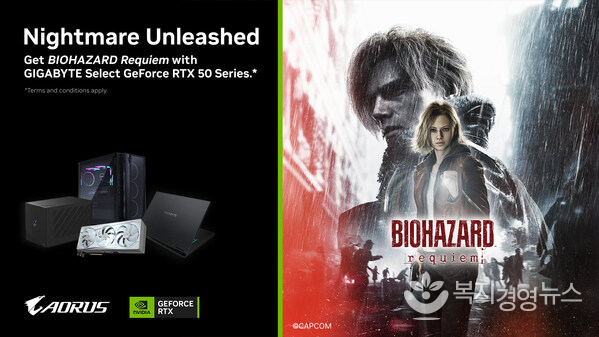 복지경영뉴스 이명수 기자 | 타이베이, 2026년 2월 11일 -- 세계적인 컴퓨터 브랜드 기가바이트(GIGABYTE)가 엔비디아(NVIDIA)와 협업해 NVIDIA GeForce RTX™ 5070 이상 GPU 또는 노트북 GPU를 탑재한 일부 그래픽카드, 데스크톱, 노트북 구매 고객을 대상으로 Biohazard Requiem 게임 번들 프로모션을 진행한다고 밝혔다.