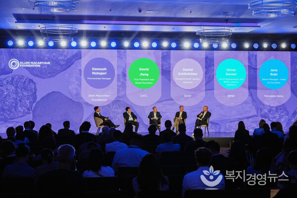 복지경영뉴스 이명수 기자 | 뮌헨 2025년 9월 11일 -- 세계 최대 배터리 업체인 CATL이 독일 뮌헨에서 열리는 세계 유수의 자동차 전시회인 IAA 2025에서 엘렌 맥아더 재단(Ellen MacArthur Foundation•EMF)이 주최한 고위급 포럼을 지원했다. 이 포럼에는 BASF, BMW, 메르세데스-벤츠(Mercedes-Benz), 유럽 배터리 연합(European Battery Alliance), 글로벌 배터리 연합(Global Battery Alliance), 벤치마크 미네랄 인텔리전스(Benchmark Mineral Intelligence), 자인테오(Xynteo) 경영진과 다양한 분야에서 활약 중인 대표자 100명 이상이 참석한 가운데 배터리 가치 사슬 전반에서 순환 경제를 달성하는 방안과 순환 경제 확대를 위한 정책적•재정적 협력 추진 방안에 대해 중점적으로 논의했다.