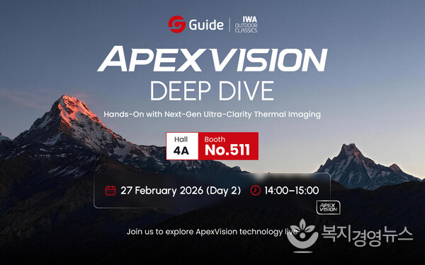 복지경영뉴스 이명수 기자 | 뉘른베르크, 독일 2026년 2월 27일 -- 열화상 기술의 선도기업 가이드(Guide)가 IWA 아웃도어클래식(IWA OutdoorClassics)에서 ApexVision 기반의 신규 아웃도어 제품을 선보인다. 이번 신기술은 적외선 화질의 초고선명 혁신을 구현했으며, 현장 방문객들은 단순한 설명을 넘어 라이브 체험 세션을 통해 직접 기능과 성능을 경험할 수 있다. 4A-511 부스를 방문하면 신형 경량 Orion C 시리즈 클립온 열화상 어태치먼트를 직접 시연해 볼 수 있다.