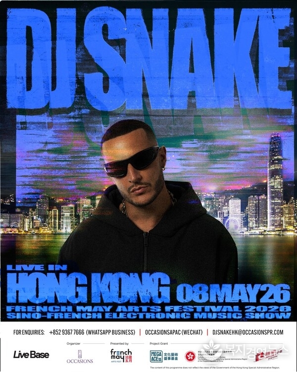 복지경영뉴스 이명수 기자 | 홍콩 2026년 3월 7일 -- 올봄 홍콩의 상징적인 빅토리아 하버 스카이라인이 역사적인 일렉트로닉 뮤직 이벤트의 배경이 될 예정이다. 프렌치 메이 아트 페스티벌 2026(French May Arts Festival 2026)이 주최하고 오케이션스 아시아 퍼시픽(Occasions Asia Pacific)이 주관하는 DJ 스네이크 라이브 인 홍콩 - 2026 프렌치 메이 아트 페스티벌: 중불 일렉트로닉 뮤직 쇼(DJ Snake Live in Hong Kong – French May Arts Festival 2026: Sino-French Electronic Music Show)에서 글로벌 슈퍼스타 DJ 스네이크(DJ Snake)가 2026년 5월 8일 대규모 야외 헤드라인 공연으로 무대에 오른다. 또한 프렌치 메이 2026은 홍콩특별행정구 정부 문화체육관광국(Culture, Sports and Tourism Bureau) 산하 메가 예술 및 문화 행사 기금(Mega Arts and Cultural Events Fund)의 재정 지원을 받는 프로젝트이기도 하다.