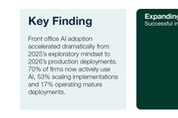 주요 결과 구매 담당 임원 200명을 대상으로 한 연례 설문조사에서 작년 같은 시점 대비 AI 도입이 크게 증가한 것으로 나타났다. 3년 만에 처음으로 혁신이 기술 및 운영 투자의 1등 동인이 됐다. 기업들은 투자 관리 용도로 타사 AI 솔루션을 선정할 때 공급업체의 안정성을 최우선으로 고려하고 있었다. 사모 시장과 대체 투자가 기술 혁신을 맞이할 준비가 되어 있다고 생각하는 응답자가 지난 12개월 사이 급격히 증가했다. 코펜하겐, 덴마크, 2026년 1월 15일 -- 금융 기술 분야의 글로벌 선도기업 심코프(SimCorp)의 의뢰로 진행된 새 글로벌 조사에 따르면, 구매측 기업의 70%가 프런트 오피스 지원에 인공 지능을 성공적으로 차용하고 있는 것으로 나타났다. 작년 보고서에서 AI 도구를 적극적으로 탐구하고 있다고 밝힌 응답자가 약 10%에 그친 것에 비하면 크게 증가한 수치다. 당시 75%는 AI의 잠재력을 인식하고는 있었지만 그것을 통합하는 방법에 대해서는 길잡이가 필요한 상태였다. 이번 조사 결과는 2026 인베스트옵스(InvestOps) 보고서에 발표된 것으로,